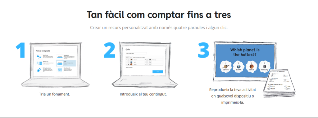 Wordwall és una plataforma en línia que permet crear activitats interactives i jocs educatius a partir d’un mateix conjunt de dades, que després es poden reutilitzar en formats diferents amb un sol clic. I, a més, la interfície es pot trobar en llengua catalana.
