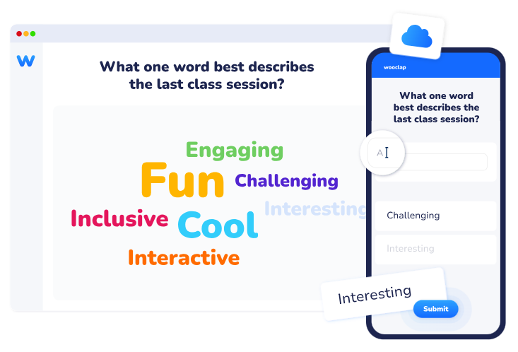 Wooclap és una eina en línia que permet plantejar preguntes o activitats interactives en temps real, a les quals l’alumnat pot respondre des del seu dispositiu (ordinador, tauleta o mòbil). Les respostes es mostren instantàniament i permeten al professorat veure què està passant a l’aula en aquell moment.